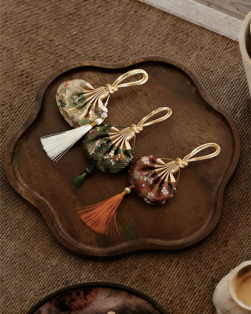 Handcrafted with Classical Chinese brocade, this sachet is meticulously woven by skilled artisans, each stitch bringing palace floral motifs and layered embroidery to life. Hours of careful handwork go into every piece, creating a labor-intensive, one-of-a-kind treasure rich in texture, symbolism, and artistry. Finished with a traditional Chinese knot and flowing tassel, it reflects the refined elegance of classical Chinese craftsmanship.